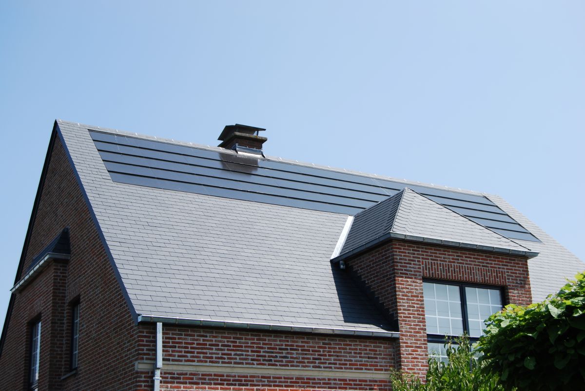 Hellend dak met leien en ingewerkte zonnepanelen